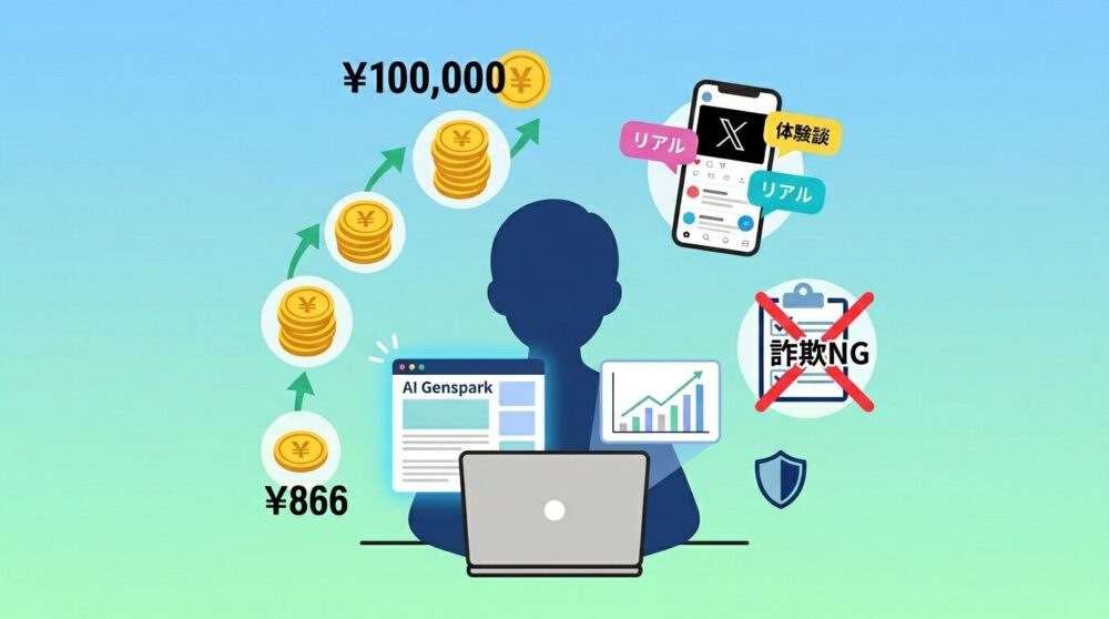 Xで広がるAI副業の体験談が伝えるのは、派手な成功ではなく「行動した人間だけが前に進める」という当たり前の真実だ。最初の866円が、いつか大きな収益への第一歩になる。そしてその歩みを加速させる武器として、Gensparkはいま最も注目すべきツールのひとつだ。ただし詐欺には絶対に近づかないこと。