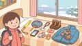 嵐ラストツアー2026「We are ARASHI」グッズ物販イラスト|雪の札幌ドームでペンライトやうちわを求めるファンたちの賑やかな行列シーン