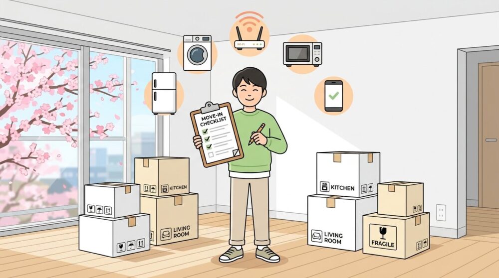「家電をセット買い」は一見お得に見えるが、不要な家電まで買わされるケースが多い。まず最低限の3点(冷蔵庫・洗濯機・電子レンジ)でスタートし、生活しながら必要なものを足していくのが最も賢い方法だ。ネット回線も「光回線が理想だが工事が間に合わない」という場合は、ホームルーターを先に契約して光回線を並行申込みするのが鉄板パターン。