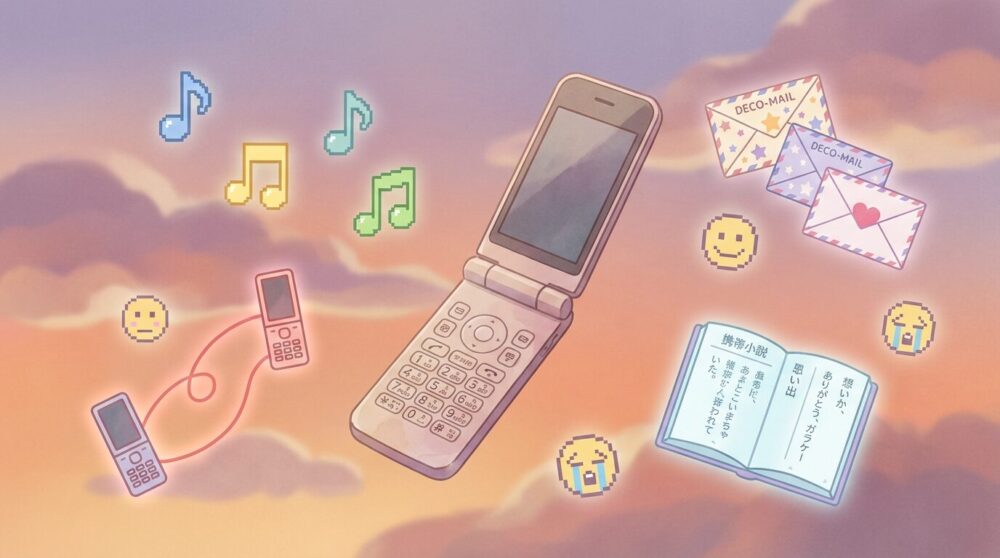 好きな人へのメールを何十分もかけて”デコ”して、送信ボタンを押す瞬間のドキドキ。返信が来るまでの永遠みたいな時間。既読機能なんてない時代、「センター問い合わせ」を何度も押した夜。