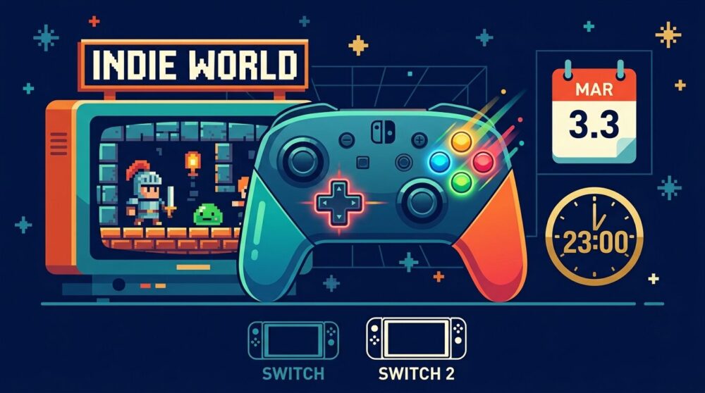 任天堂は本日3月2日、インディーゲーム紹介番組「Indie World 2026.3.3」を明日3月3日(火)23時よりライブ配信すると発表した。放送時間は約25分。Nintendo Switch 2とNintendo Switchの両プラットフォームで遊べるインディーゲームが紹介される。