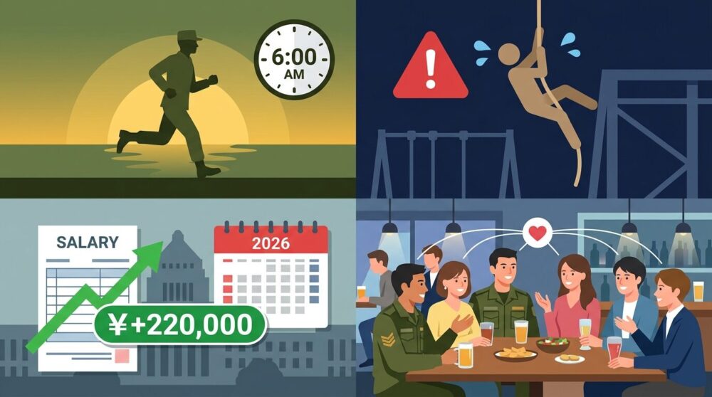 自衛隊の日常は確かにハードだ。しかしそのハードさの裏に、規律・仲間との絆・社会への使命感という、民間では得にくい経験がある。そして2026年現在、給与改善・ライフスタイル改善が官邸主導で動き出しており、「辞める理由」が一つずつ消えていく過渡期に入っている。