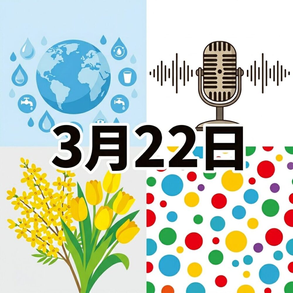 3月22日は水・放送・アートが交差する日。世界水の日で環境を考え、放送記念日で情報の歴史を振り返り、草間彌生の誕生日でアートに触れる。朝礼の一言に、SNS投稿に、ぜひ使ってみてほしい。