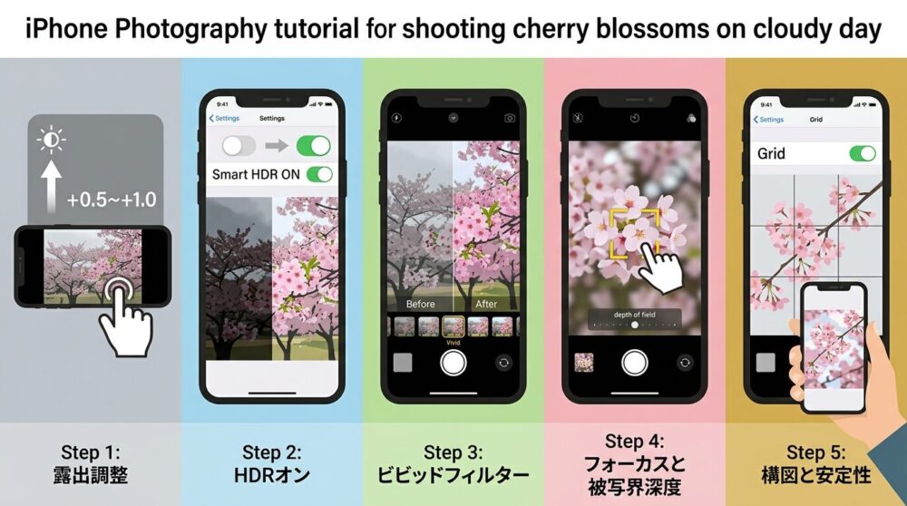 【iPhone編】曇り桜を映えさせる設定5ステップ