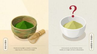 本物の高品質な宇治抹茶は深みのある鮮やかな緑色をしており、海苔のような「覆い香」とほんのり甘い香りが特徴だ。くすんだ黄緑色、青臭い匂い、口の中でザラつく舌触りは低品質品や劣化のサインだ。実際、MBS毎日放送の取材で小山社長が比較して「だいぶ色合いが違う」と指摘したとおりの差が現れる。