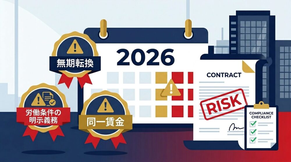 2026年、日本の雇用ルールは40年ぶりの大改正を迎えようとしている。契約社員・パート・アルバイトを雇用するすべての企業にとって、「知らなかった」では済まない変化の波が押し寄せている。無期転換・同一労働同一賃金・新たな明示義務。